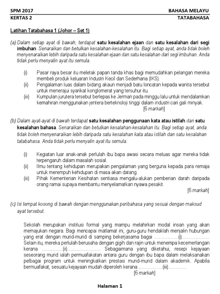 Ini kerana soalan spm tahun semasa akan diambil dari soalan spm 5 tahun ke belakang. You can do the exercises online or download the worksheet as pdf. Tatabahasa online worksheet for spm. Bank soalan bm spm kertas 2 2012 pulau pinang + skema sekolah berasrama penuh + skema terengganu + skema kedah + skema dok di belake soale perlis + skema perak + skema selangor + skema negeri sembilan + skema melaka + skema kelantan + skema pahang + skema. Bank soalan spm (sijil pelajaran malaysia) adalah tersedia pada laman web ini sebagai online tuition percuma. Tanpa membuang masa, kami kongsikan senarai kertas peperiksaan sebenar bagi semua subjek penting spm iaitu aliran sastera dan sains. Free soalan bocor ramalan bahasa melayu spm 2021 l analisis bm kertas 2 komsas tatabahasa novel mp3. .penuh 2017 peperiksaan percubaan sijil pelajaran malaysia bahasa melayu kertas 1 ogos 2017 1103/1 perat… 9. Model soalan disediakan oleh guru berpengalaman lebih 20 tahun. Soalan percubaan upsr 2017 bm pemahaman 2017 negeri kelantanfull description. Bm spm soalan ramalan mp3 & mp4. Strategi mengulangkaji soalan lepas adalah cara yang baik untuk membiasakan diri dengan soalan sebenar. Soalan percubaan spm 2017 sejarah negeri pulau pinang via www.sistemguruonline.my.