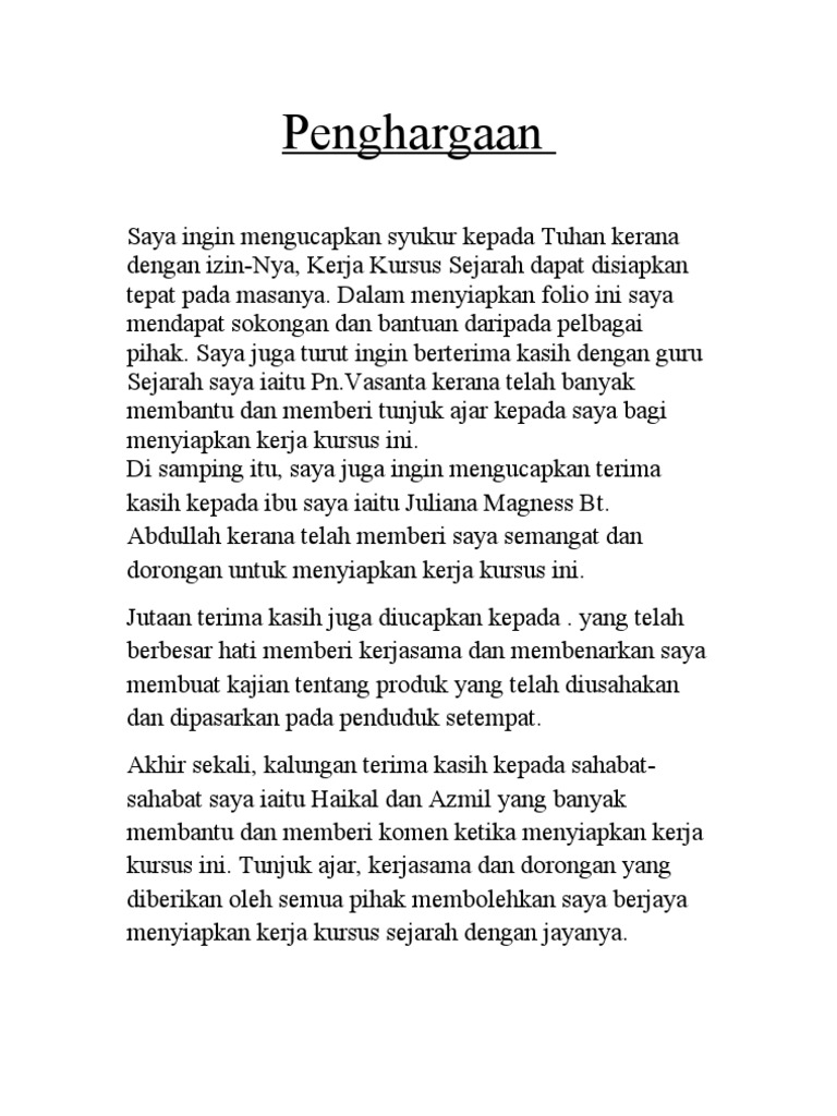 Contoh pendahuluan dalam folio kabar blok. Buku skrap atau folio yang anda perlu siapkan biasanya berdasarkan apa yang anda kaji atau objektifnya. Buku skrap atau folio perlu ada : Ilovesejarah contoh rumusan kertas 3 spm. For more information and source, see on this link : Sehubungan dengan itu, saya ingin mengucapkan jutaan terima kasih kepada guru sejarah saya yang telah banyak membantu saya menyiapkan kerja kursus ini. Kerana telah memberi panduan dan idea sepanjang kerja kursus ini. Contoh kerja kursus sejarah pt3 2020 contoh rujukan terbaik tingkatan 3 terdapat beberapa contoh rujukan yang ingin dikongsikan bersama dengan adik adik di sini calon pt3 untuk artikel kali ini. Oleh kerana kesusahan keluarga bapa saya memilih untuk berkerja selepas tamat peperiksaan. Saya juga mula merasai kepentingan matapelajaran titas ini terhadap diri saya kerana saya dapat belajar asal usul serta perkembangan tamadun agama saya sendiri. Bismillahirahmanirahim , dengan penuh kesyukuran kehadrat ilahi kerana limpah kurnianya, dapat saya menyelesaikan tugasan kerja kursus ini dengan penuh jayanya. Contoh tugas untuk membuat portofolio karya. Contoh penghargaan dalam folio contoh waouw.